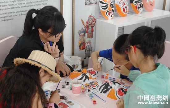 走進(jìn)觀光大廳,“粉墨寶貝”處處在向您微笑。經(jīng)過漫畫家塑造的動漫昆劇臉譜,可愛可親。這些臉譜根據(jù)角色不同,含有諸多種類和奧妙。為了讓孩子們體驗畫臉譜的樂趣,現(xiàn)場提供了由林政德先生根據(jù)真實臉譜精心設(shè)計,帶有萌萌動畫特色、又不失藝術(shù)真實性的臉譜素材,供在場的孩子們參照描繪。孩子們通過畫臉譜,既增長了知識,又鍛煉了動手能力。