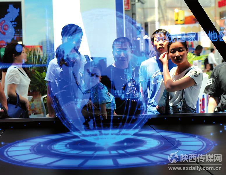 5月23日,西安曲江國際會展中心展館里,渭南一家企業研制的RHD全息成像系統受到參會客商和觀眾的關注。 記者 母家亮攝