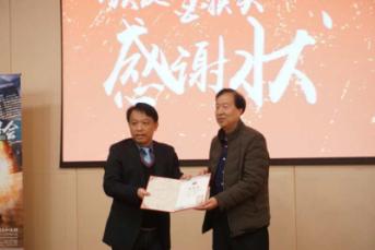 西北大學(xué)藝術(shù)學(xué)院馬永寬書記接受組委會蕭建華頒發(fā)的感謝狀。(攝影:溫雅)