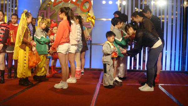 小百靈藝術(shù)團老師在輔導(dǎo)臺灣小朋友表演舞蹈