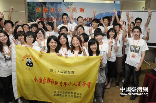 7月11日下午,全國臺聯(lián)2010年臺胞青年千人夏令營四川·成都分營——“熊貓故鄉(xiāng)仍美麗”活動隆重開營。(圖片來源:四川省臺辦)