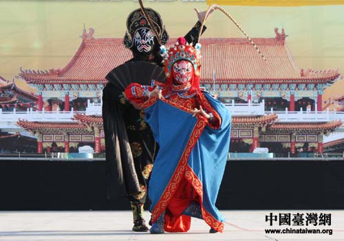 中國臺灣網3月1日臺南消息 2月27日下午,四川民族歌舞交流團在臺灣省臺南縣正統鹿耳門圣母廟廟庭舉行了第三場赴臺交流演出。當天,艷陽高照,數千民眾頂著烈日觀看了演出。演員們敬業的精神、精湛的表演,獲得了臺灣民眾的好評。(中國臺灣網、四川省臺辦聯合報道)