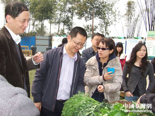 市臺辦一行在新津縣興義鎮臺灣翔生有機生態農場調研。圖片來源:成都市臺辦