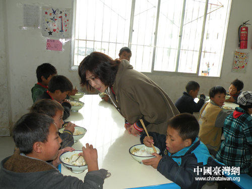 張平宜在學(xué)生餐廳陪著孩子們用餐(圖片來源:四川省臺辦)