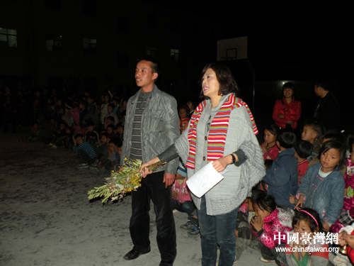 張平宜和大營盤學校的羅校長共同主持歡慶彝族年篝火晚會(圖片來源:四川省臺辦)