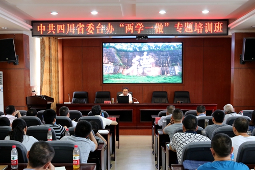 四川省臺辦主任周敏謙主持學習教育動員大會并講黨課。