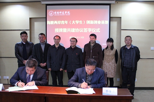 全國(guó)臺(tái)企聯(lián)常務(wù)副會(huì)長(zhǎng)、兩岸交流委員會(huì)副會(huì)長(zhǎng)高錦樂(lè)還與綿陽(yáng)師范學(xué)院院長(zhǎng)王海濱簽訂了“海峽兩岸大學(xué)生創(chuàng)新創(chuàng)業(yè)基地”共建協(xié)議。