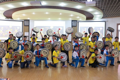 臺灣師生與鎮子小學師生互贈親手繪制的團扇作品。