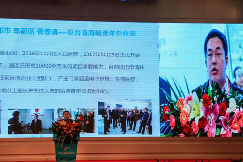 共青團德陽市委書記魏宇以“為什么臺灣青年會選擇德陽?為什么會來德陽創業?為什么能在德陽創業成功?”三個問題開題,分別從地理位置、經濟實力、工業基礎、歷史底蘊、人文環境五個方面介紹德陽市情,總結了海峽兩岸青年創業園建園一年以來取得的成績,并為現場兩岸青年詳細推介了德陽市“一個園區、雙重服務、一套政策”的德陽模式。他說,德陽市海峽兩岸青年創業園成立于2016年6月,是四川首家、也是目前西部唯一的國家級“海峽兩岸青年創業基地”,目前已入駐臺灣青創企業30家,涵蓋文化創意、互聯網、生物科技、精致農業、商貿、新媒體、現代服務業等多個領域。“一個園區”即免費為臺灣青年提供8000平米的創業園區和3000平米的創客公寓,實現臺灣青年拎包入駐園區、入住公寓。“雙重服務”即高效的政府服務和精準的園區服務。政府服務包括以市長“直通車”服務機制促項目落實;“一個機構、一扇窗口、一枚公章、一諾即辦”優化審批流程;以“項目秘書制”實現一對一、點對點服務。園區服務包括“以臺灣青年服務臺灣青年”、“以臺灣青年吸引臺灣青年”,讓臺灣青年在德陽也能找到家的感覺。“一套政策”即在全省率先出臺支持和鼓勵臺灣青年來德陽創新創業的政策,為臺灣青年落地發展提供支持。