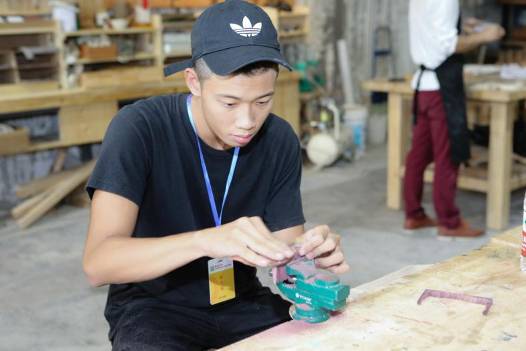 陳子耀來自臺灣世新大學,是一個愛好打籃球的陽光boy。用木頭做一把梳子,用砂紙一點一點打磨,對他來說,是從來沒有過的體驗!暗谝淮巫鲞@種細活,感覺比打籃球難多了……”不過,雖然嘴上說著很難,但他依舊耐心打磨,細心請教!跋胍龊靡稽c,準備送給媽媽!”