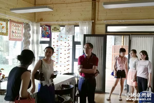 調研組在“126”文創園了解“女紅”和拼布文化培訓基地開展教學和培訓情況。(圖片來源:四川省臺辦)