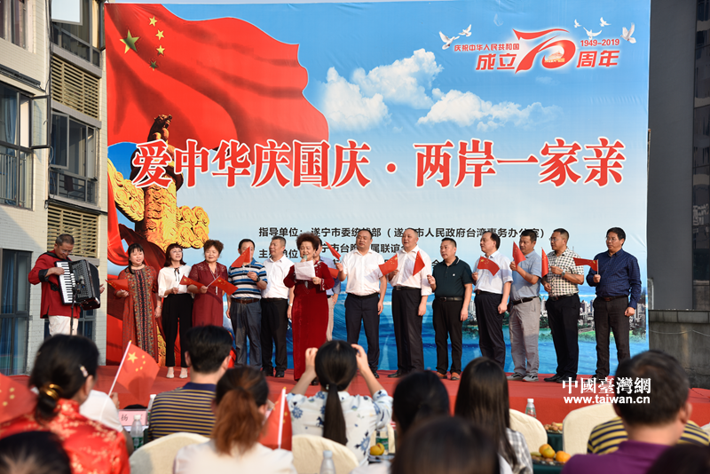 中國臺灣網10月16日訊 國慶前夕,遂寧市臺聯和市臺協共同舉辦了“愛中華慶國慶·兩岸一家親”慶祝新中國成立70周年文藝活動,共90余名代表參加。