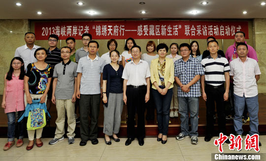8月8日,2013海峽兩岸記者“錦繡天府行——感受藏區(qū)新生活”聯(lián)合采訪(fǎng)活動(dòng)在成都啟動(dòng)。圖為聯(lián)合采訪(fǎng)活動(dòng)啟動(dòng)儀式。安源 攝