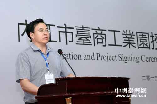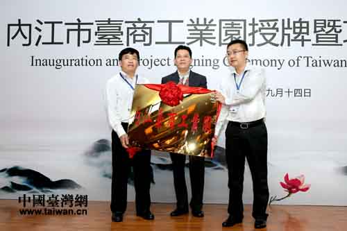 中國臺灣網9月18日內江消息 日前,內江市臺商工業園授牌暨項目簽約儀式在四川省內江市舉行。省政協副主席楊興平為內江市臺商工業園授牌,省臺辦副主任張軍宣讀了省政府辦公廳關于內江建立臺商工業園的批復,內江市委書記曾萬明,市委副書記、市長楊松柏,市人大常委會主任王賓,市政協主席陳宗淑以及成都臺商協會會長高錦樂等來自臺灣、四川的企業家代表出席儀式。儀式由市委副書記任曉春主持。