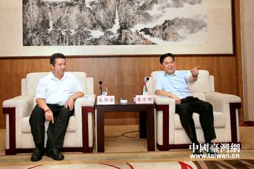 內江市委書記曾萬明會見成都臺商協會會長高錦樂。(內江市臺辦供圖)