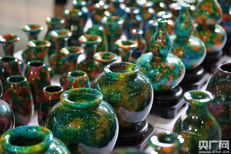 七彩玉石是由含多種共生礦石的玉綠石文石經過高溫燒制而成,特點是含共生礦石越多,花色越豐富。