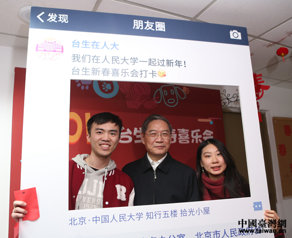 中國臺(tái)灣網(wǎng)1月21日北京訊 1月20日下午,中共中央臺(tái)辦、國務(wù)院臺(tái)辦主任張志軍赴中國人民大學(xué)走訪調(diào)研,看望在校臺(tái)灣師生。晚上,張志軍與在京高校臺(tái)籍教師進(jìn)行座談交流。