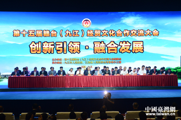 8月30日上午,第十五屆贛臺(九江)經貿文化合作交流大會(簡稱贛臺會)在江西九江開幕。中共中央臺辦、國務院臺辦主任張志軍,江西省省長劉奇,臺灣三三企業交流會會長江丙坤,全國臺企聯會長王屏生等出席了大會,本屆“贛臺會”參會人數約800人左右,其中臺灣嘉賓約500人。現場共簽約79個臺資入贛項目,簽約合同金額達40.6億美元。