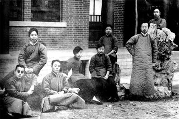 “五四”運動時期郭隆真(右三)與參與學生運動的同學們合影。