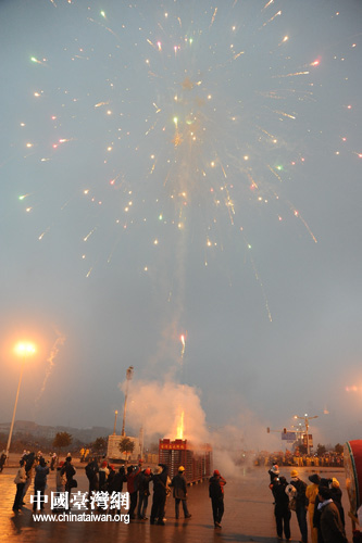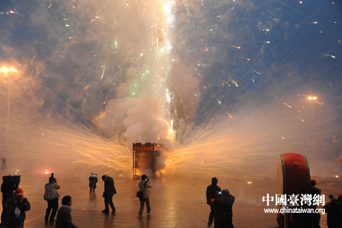 中國臺灣網(wǎng)2月21日賓陽消息 2月20日晚上至2月21日凌晨,廣西南寧賓陽縣城成為世界上最熱鬧的地方,有千年歷史的南寧賓陽炮龍和有百年歷史的臺南鹽水蜂炮同場展演,使整個縣城陷入狂歡之中,幾十萬當(dāng)?shù)鼐用瘛⒅苓叺貐^(qū)游客和臺灣鹽水來的嘉賓在這里體驗(yàn)了一回“東方狂歡節(jié)”。