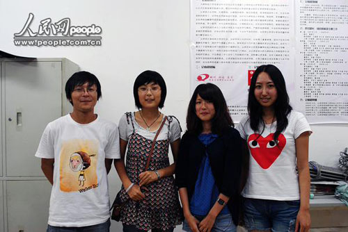 謝鈞(右二)與學(xué)生記者合影留念。圖片來源:人民網(wǎng)