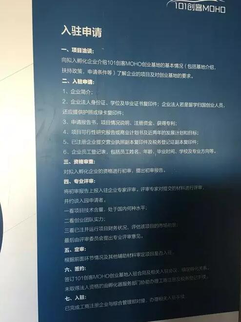 負(fù)責(zé)此項目的運營副總經(jīng)理孫艷介紹說,創(chuàng)客需要提供企業(yè)簡介、企業(yè)法人身份證、學(xué)位及畢業(yè)證復(fù)印件、申請報告書等一系列相關(guān)材料。眾創(chuàng)空間將對其進(jìn)行審核,并做出專業(yè)評估,評估通過后,雙方進(jìn)行簽約,最終完成入駐手續(xù)。
