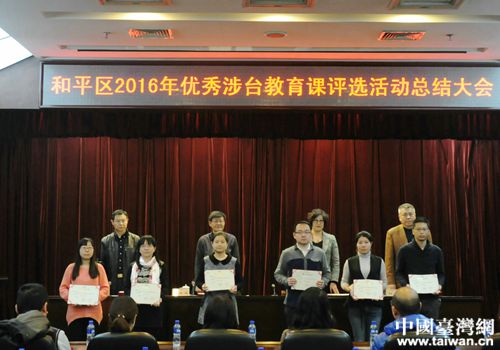 中國臺灣網12月28日天津訊 12月16日,和平區召開2016年優秀涉臺教育課評選活動總結會。和平區副區長靳凡,市臺辦副巡視員陳建萍,市臺辦、區臺辦和區教育局相關負責同志以及受表彰教師參加會議。