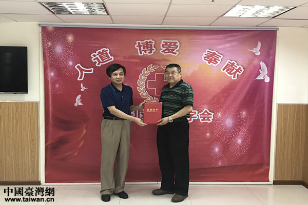中國臺灣網(wǎng)7月27日南開訊 近日,天津南開區(qū)紅十字會常務(wù)副會長王建華向南開區(qū)臺商林金星先生頒發(fā)了弘揚(yáng)“人道、博愛、奉獻(xiàn)”紅十字精神的榮譽(yù)證書。