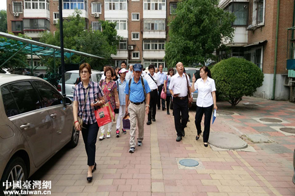 中國臺灣網(wǎng)7月27日天津訊 近日,臺灣新竹縣新豐鄉(xiāng)民代表會副主席鄭奕財一行27人來到天津市觀景里社區(qū)參觀交流,南開區(qū)臺辦、水上公園街負責同志陪同參觀。