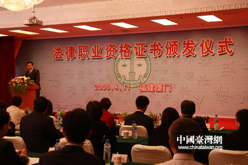 中國臺灣網(wǎng)4月12日廈門消息 昨天下午,司法部國家司法考試辦公室為首批通過國家司法考試,獲得法律職業(yè)資格的臺灣居民頒發(fā)了《法律職業(yè)資格證書》。獲頒證書的臺灣居民紛紛表示,國家司法考試向臺灣居民打開大門,為海峽兩岸的法律交流與溝通架起了一座新平臺。