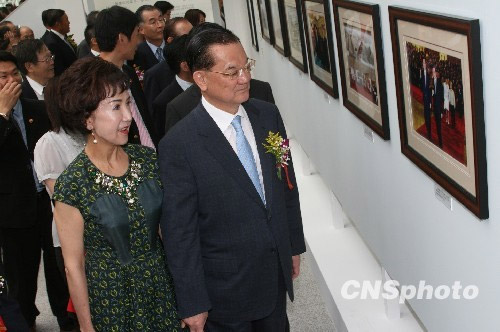 資料圖:2009年7月29日下午,胸懷山河歲月,戀戀兩岸情濃——臺灣攝影師楊永山先生攝影展在天津開幕。正在天津參訪的中國國民黨榮譽主席連戰出席影展開幕式并致辭。圖為連戰夫婦參觀臺灣攝影師楊永山先生攝影展。 中新社發 郭曉帆 攝
