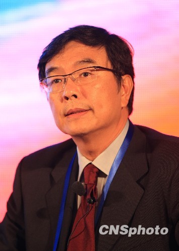 九月十九日,正在上海參加第五屆世界華文傳媒論壇的《聯合晚報》社長項國寧,出席媒體高端論壇就在金融危機下的華文媒體如何迎接挑戰與機遇建言。 中新社發 湯彥俊 攝