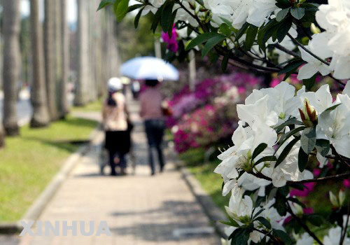 資料圖:2005年3月21日,人們在臺灣大學校園內漫步。陽春三月,臺灣大學校園內處處春意盎然、花香鳥語,整個校園呈現繽紛色彩。 新華社記者 賴向東 攝