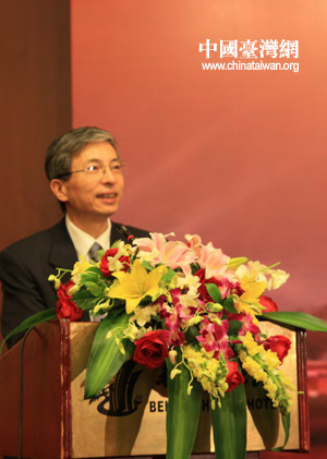 北京市政協副主席、臺盟北京市委主委蔡國雄代表主辦方致歡迎辭。(中國臺灣網 趙靜 攝)