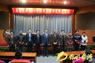 山東大學獲2009年度光華獎學金學生與頒獎領導合影(你好臺灣網 圖)