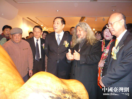 中國臺灣網1月6日上海消息 1月6日上午,由上海文化聯誼會主辦的“康木祥2010上海木雕藝術展”在上海市美術館開幕。上海市政協副主席李良園、上海市政府副秘書長沙海林、上海市人民政府臺灣事務辦公室副主任趙雅君、上海市文化廣播影視管理局黨委副書記劉建、上海市臺灣同胞投資企業協會會長李茂盛共同出席剪彩。