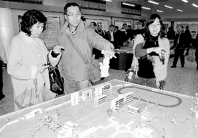 東南網-福建日報1月25日訊(劉永良) 1月21日至23日,以臺北縣明德高中校長黃祺楓為團長的參訪團一行28人,在永定縣開展教育交流活動。通過實地參觀、座談交流,雙方增進了相互了解,永定一中與臺北縣明德高中、永定縣胡文虎小學與臺北縣文德“國小”、永定縣實驗小學與臺北縣海山“國小”、湖坑中心小學與臺北縣頭前“國小”分別簽訂了締結友好學校意向書。圖為參訪團成員在永定縣僑育中學參觀校園規劃模型。