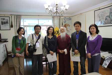 記者們驚訝于楊先生不僅作品傳承大千風(fēng)格,外形上白發(fā)髯垂,一口川音也與老師神似,猶如大千在世,他們希望楊先生有機(jī)會(huì)再次回到臺(tái)灣傳播大千藝術(shù)。(龔友國(guó))