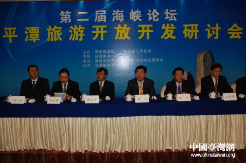 由國家旅游局和福建省人民政府共同舉辦的海峽論壇·平潭旅游開放開發(fā)研討會(huì)于2010年6月21日上午在福州市舉行。國家旅游局副局長(zhǎng)杜江、臺(tái)盟中央秘書長(zhǎng)張寧等出席會(huì)議。(中國臺(tái)灣網(wǎng) 趙輝 攝)