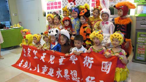 。ㄓ浾邊莵喢、徐蕾)在臺灣“8·8”風災周年之際,來自北京的藍天兒童藝術團今天在這里舉行了災區果樹認養活動。在臺北統一超商大樓的“7—11”ibon便利生活站,孩子們穿著可愛的七彩戲服,邊品嘗臺灣的各式水果,邊用童言童語推廣介紹,鼓勵大朋友、小朋友一同加入愛心認養隊伍,希望把愛傳遞到“8·8”災區。