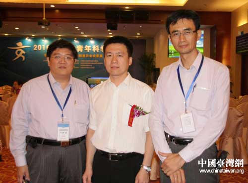 臺(tái)灣農(nóng)業(yè)旅游發(fā)展協(xié)會(huì)副秘書(shū)長(zhǎng)洪崇仁(右)、負(fù)責(zé)人陳澤俊(左)與國(guó)臺(tái)辦交流局處長(zhǎng)馬振杰(中)合影(中國(guó)臺(tái)灣網(wǎng) 孫金誠(chéng) 攝)