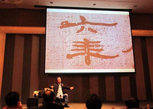 蔣勛26日在泰國演講“漢字之美”。對于繁簡字體問題,蔣勛表示,他贊成一種包容。圖片來源:“中央社”