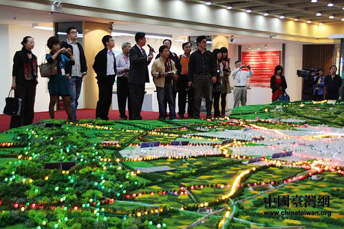 記者們站在成都市城鄉規劃總模型前興致勃勃。(中國臺灣網 馬迪 攝)