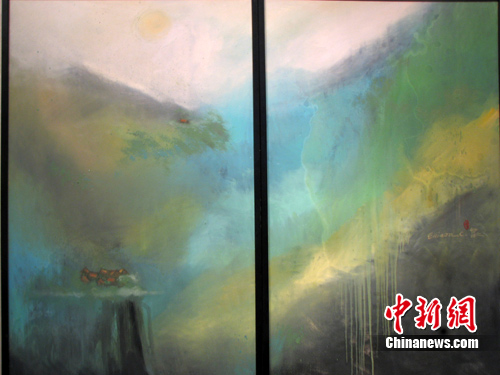 在浙江西子博物館記者見到了陳歡先生,他打趣地說,在臺灣別人都說他是“臺灣的吳冠中”,“我的畫有一種東方的禪意。”陳歡說,他采用的是當(dāng)代結(jié)合傳統(tǒng)水墨畫的意境,而且擺脫了純種稠密的油彩,用一種輕薄的手法自由地盡情流動于畫面之上。