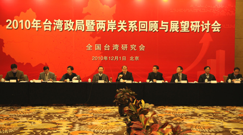 中國臺灣網(wǎng)12月1日北京消息 1日上午,全國臺灣研究會在北京舉辦“2010年臺灣政局暨兩岸關(guān)系回顧與展望”研討會,邀請兩岸專家學者回顧和總結(jié)一年來的島內(nèi)政局與兩岸關(guān)系發(fā)展,以及臺灣年底“五市選舉”后的兩岸關(guān)系發(fā)展趨勢進行深入探討。與會的四十余位專家學者來自全國各地包括海峽對岸的研究機構(gòu)和高校,海峽兩岸關(guān)系協(xié)會副會長王在希、中華文化發(fā)展促進會副會長辛旗等出席了研討會。