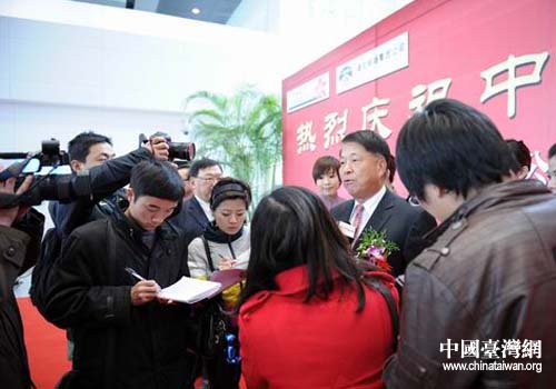 華航總經(jīng)理孫洪祥接受兩岸媒體采訪。(圖片來(lái)源:湖北省臺(tái)辦)