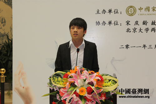 北京大學(xué)兩岸文化交流協(xié)會會長蔡秉憲、中國地質(zhì)大學(xué)學(xué)生周舟在啟動儀式致辭,號召兩岸四地青年學(xué)生讀懂孫中山和宋慶齡對民族,對人民的感情,以振興中華、民族復(fù)興為己任,共同肩負(fù)起兩岸和平發(fā)展、互惠共贏的使命。