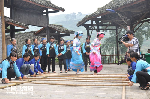 踏著節拍跳起竹桿舞。(貴陽市臺辦 胡珊珊 攝)