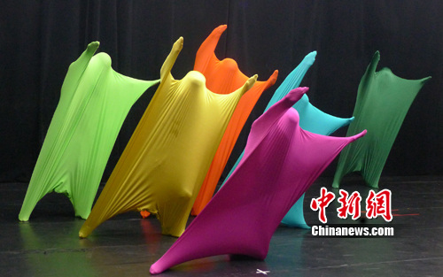 臺灣紙風車劇團將于7月20日至22日第三次“登陸”國家大劇院,帶來5場兒童劇《紙風車幻想曲》,其中最經典段落《八歲一個人去旅行》改編自吳念真的同名繪本故事。圖為演員們表演《小口袋》。杜燕 攝