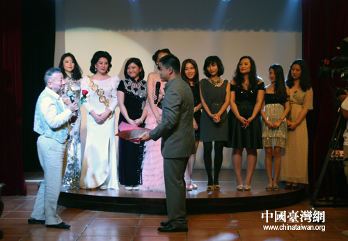 鄧麗君的老師、來自臺灣的著名音樂制作人左宏元先生為自己心儀的模仿者獻上玫瑰。(中國臺灣網 王怡然 攝)